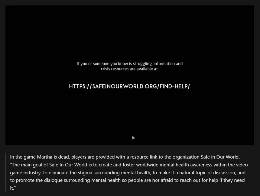 The detail where mental health considerations can be important within game development and player experiences, and provide examples of ways this has been done well in other games.