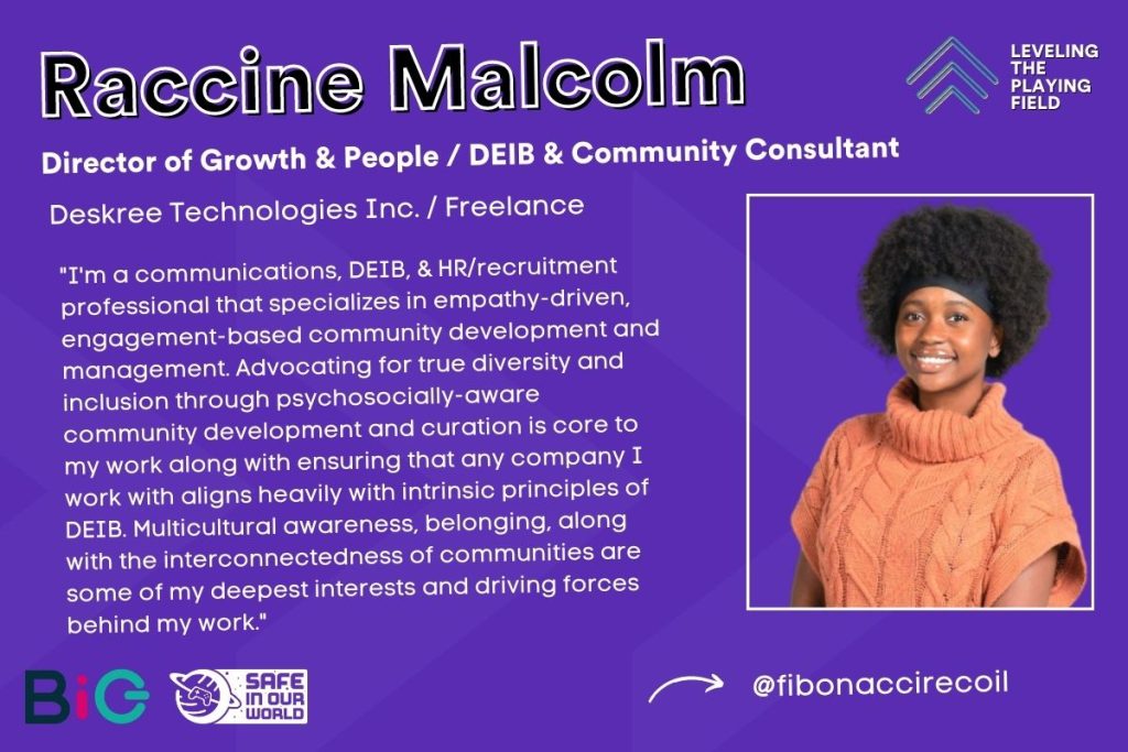 “As the Content Creator & Community Manager for BiG, I’m proud to work on diversity initiatives such as Games Devs Across Africa and “this” 🙂 to spotlight and encourage BIPOC leaders and aspiring gamesindustry talent. I hope the stories can uplift more people from marginalised groups to have their voices heard.”